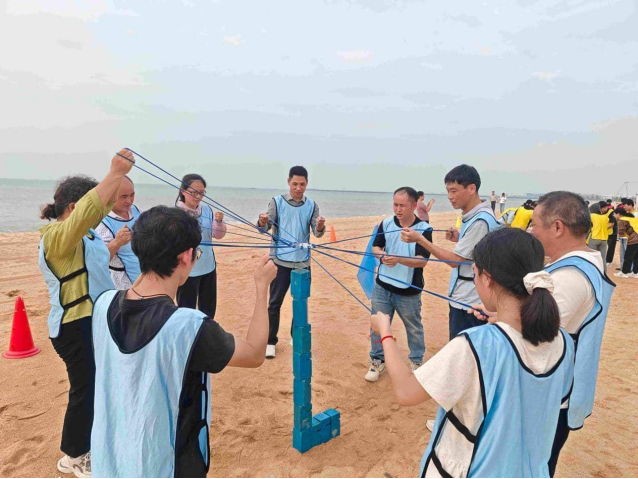 本次活動(dòng)設(shè)置了豐富且有意義的內(nèi)容:上午,員工們參觀了??谟^瀾湖電影公社,并紛紛裝扮、打卡,收獲了持續(xù)一天的好心情;下午,員工們?cè)谏碁I(yíng)地上開(kāi)展素質(zhì)拓展活動(dòng),“合力建塔”、“快樂(lè)毛毛蟲(chóng)”、“挑戰(zhàn)No.1”等項(xiàng)目增加了團(tuán)隊(duì)凝聚力,提升了團(tuán)隊(duì)分工、決策能力,沙灘上的加油聲、歡笑聲此起彼伏;晚上,員工們?cè)跔I(yíng)地進(jìn)行自助燒烤、篝火晚會(huì),在寧?kù)o的夜色下享受美食、舞蹈、歌聲,每個(gè)人都積極參與、樂(lè)在其中。